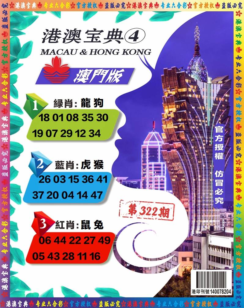 | 320期五码 | 18 04 47 44 08 | 开:狗08 |